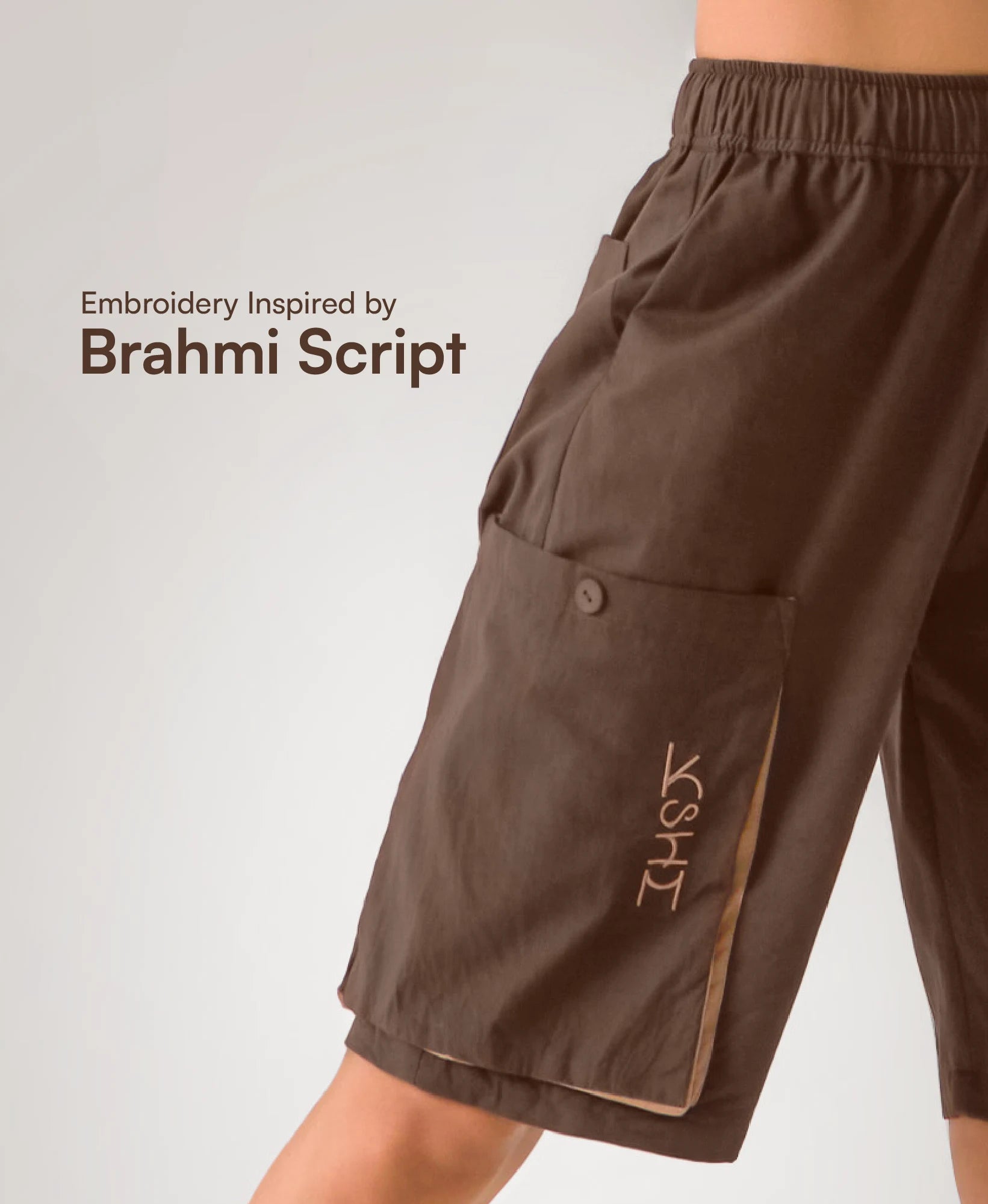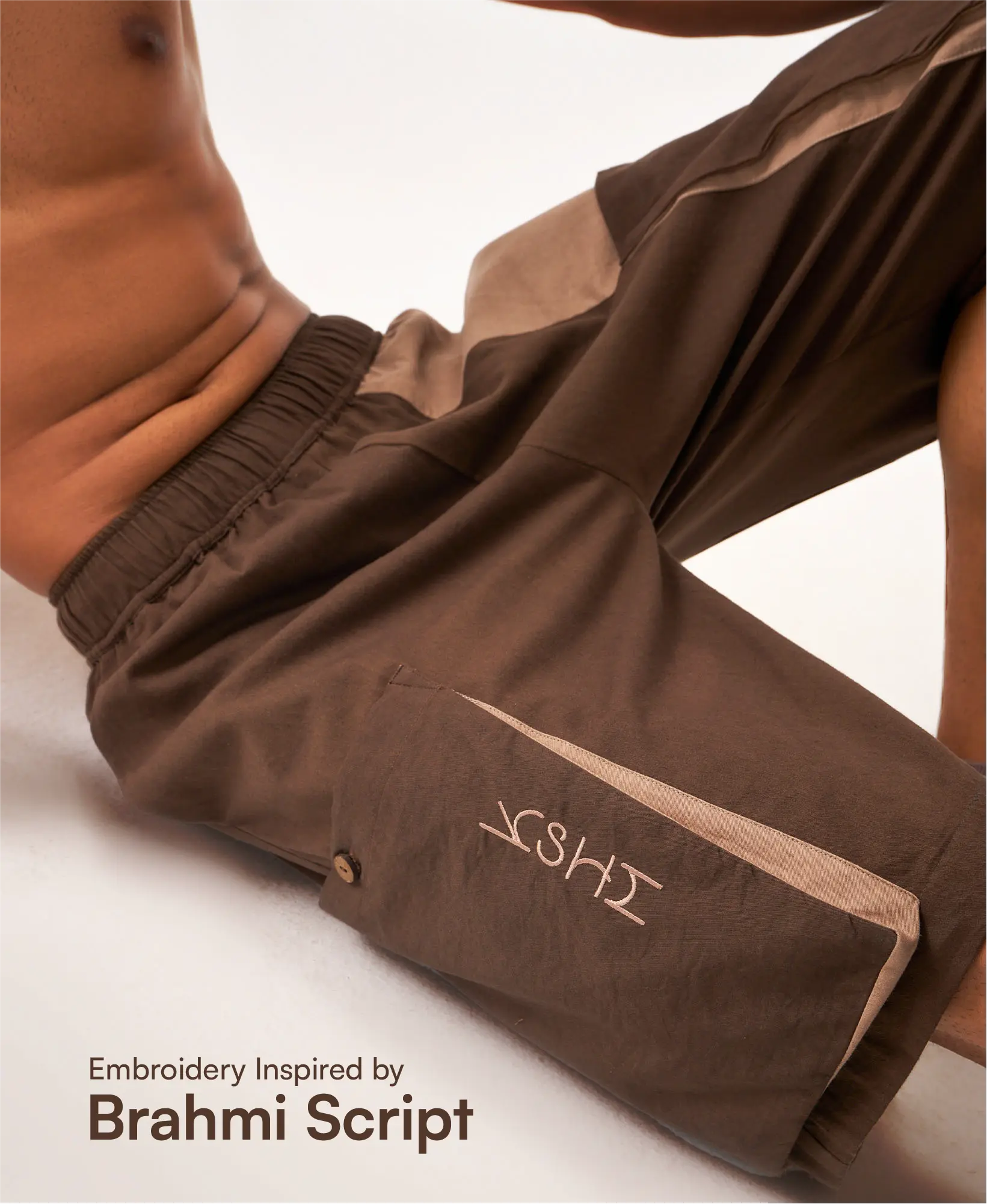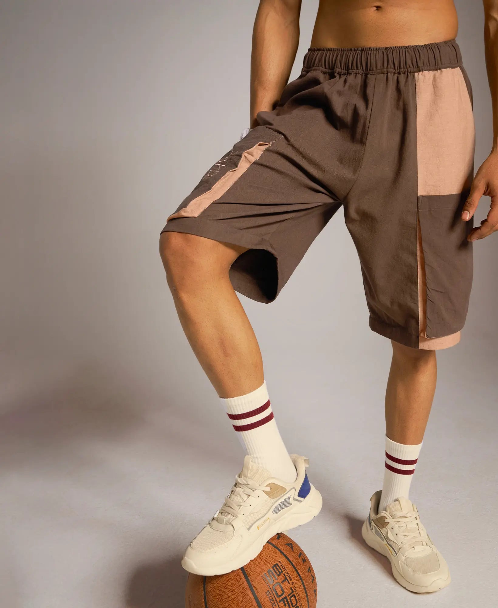 A fresh take on classic basketball shorts, featuring earthy tones and details — inspired by ancient Brahmi script, designed for effortless everyday wear.