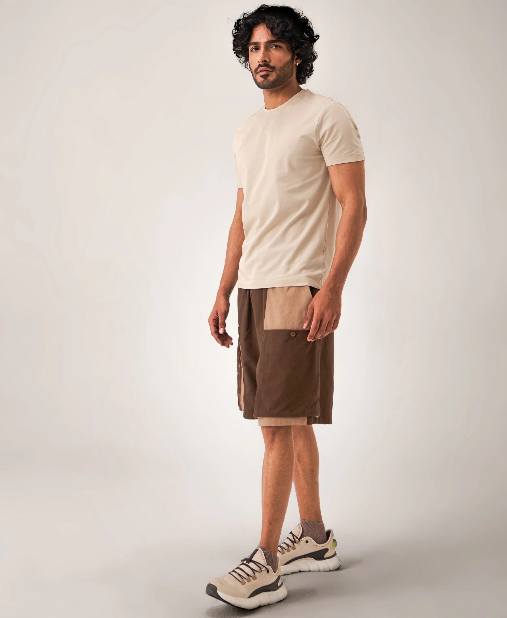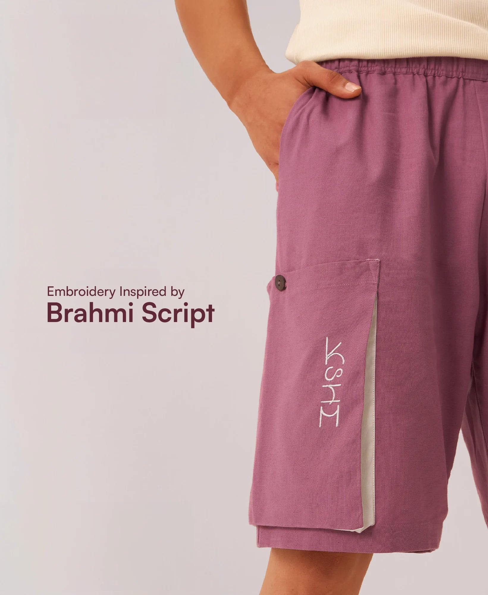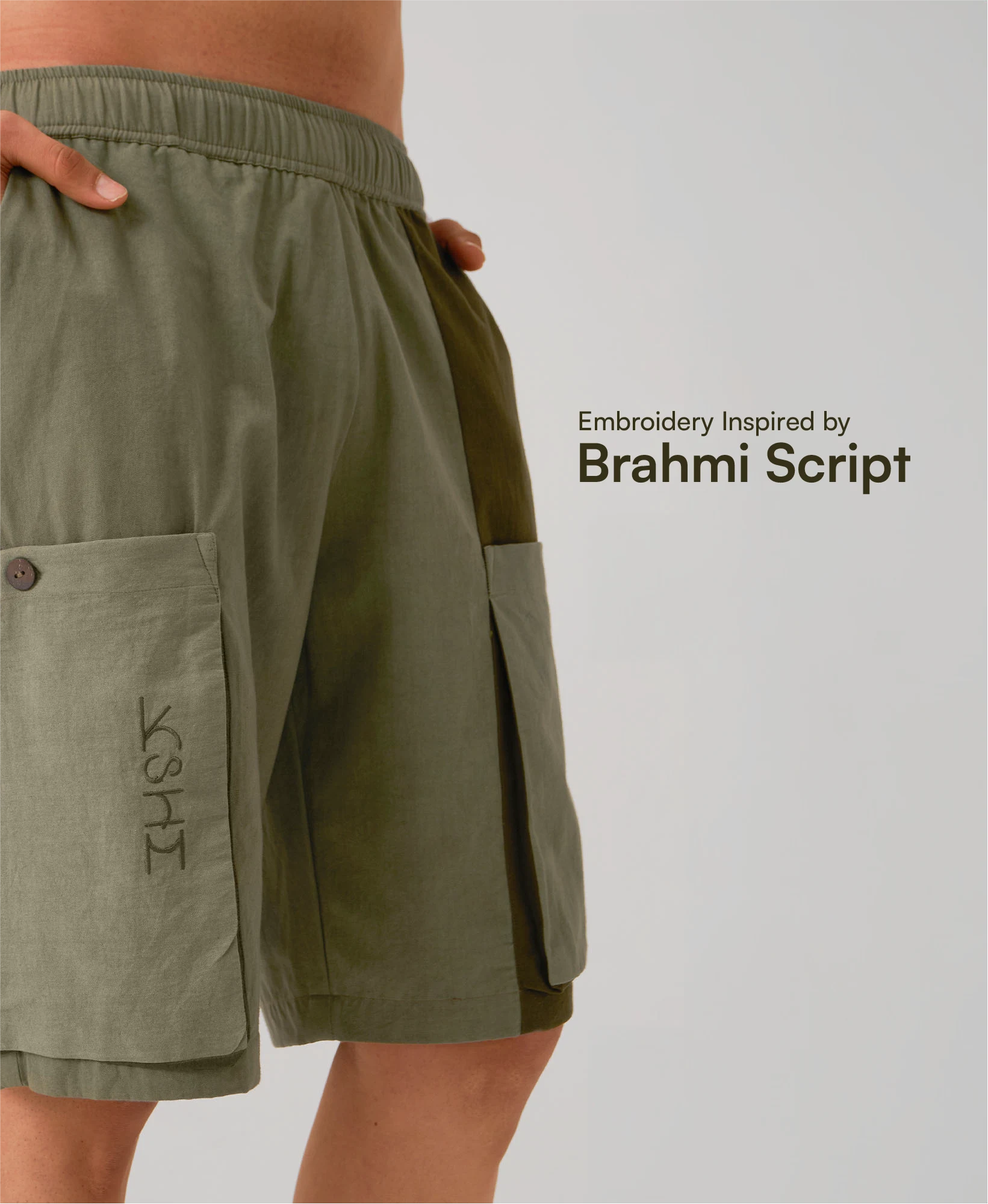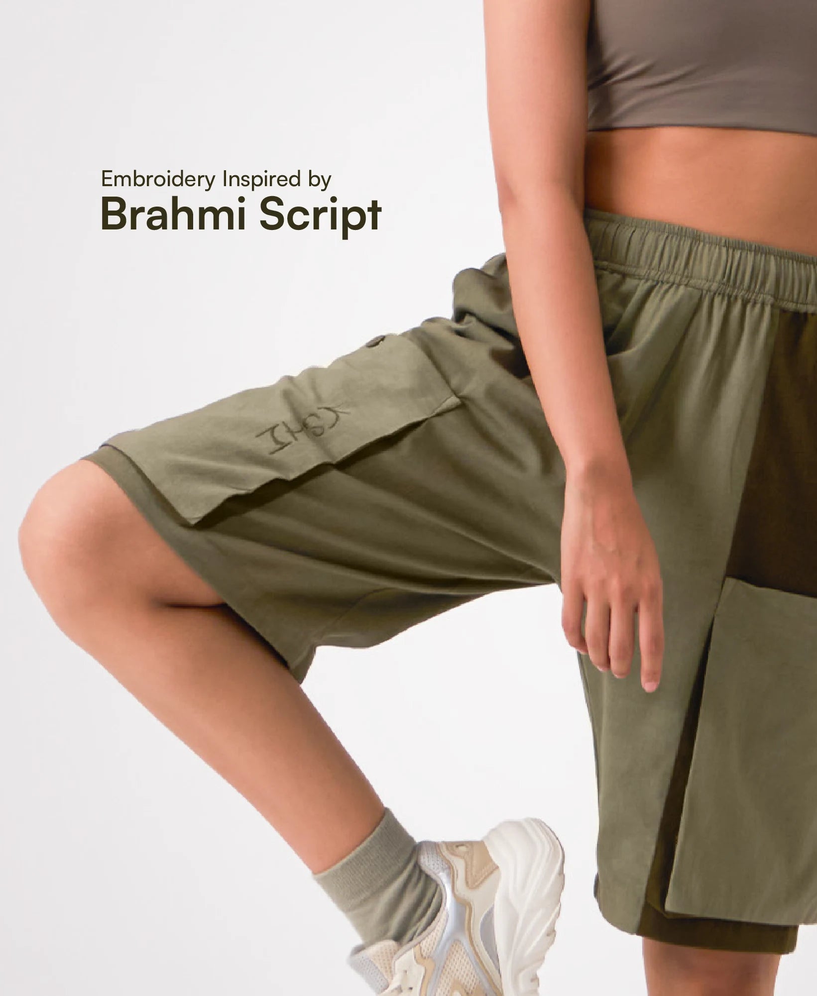A fresh take on classic basketball shorts, featuring earthy tones and details — inspired by ancient Brahmi script, designed for effortless everyday wear.