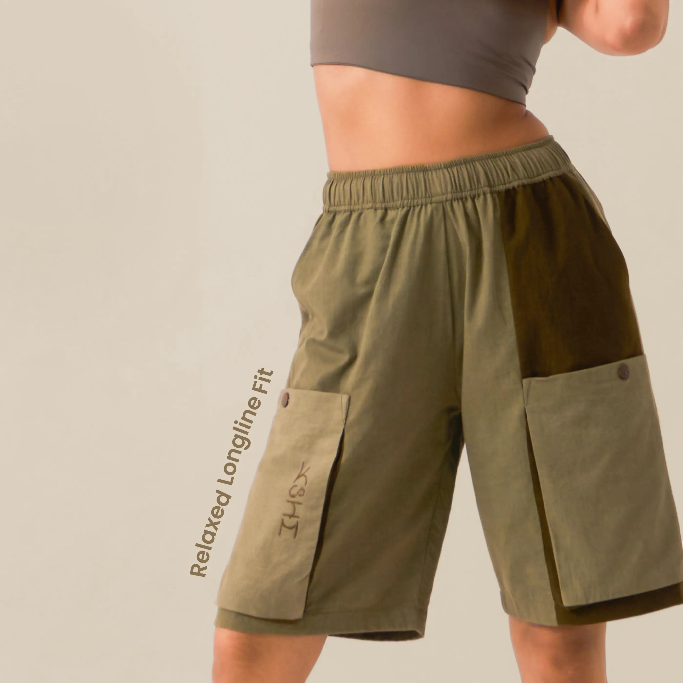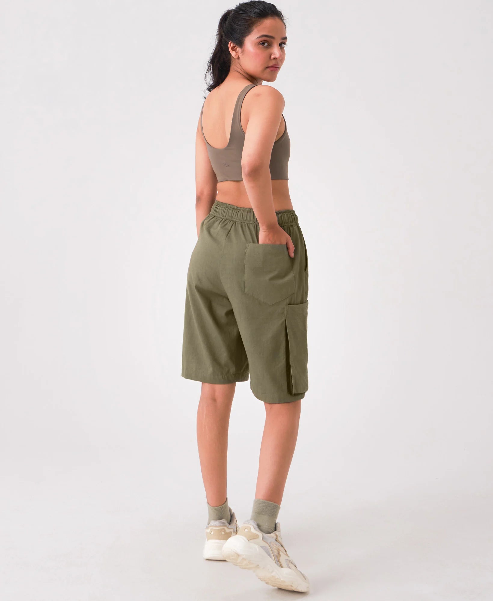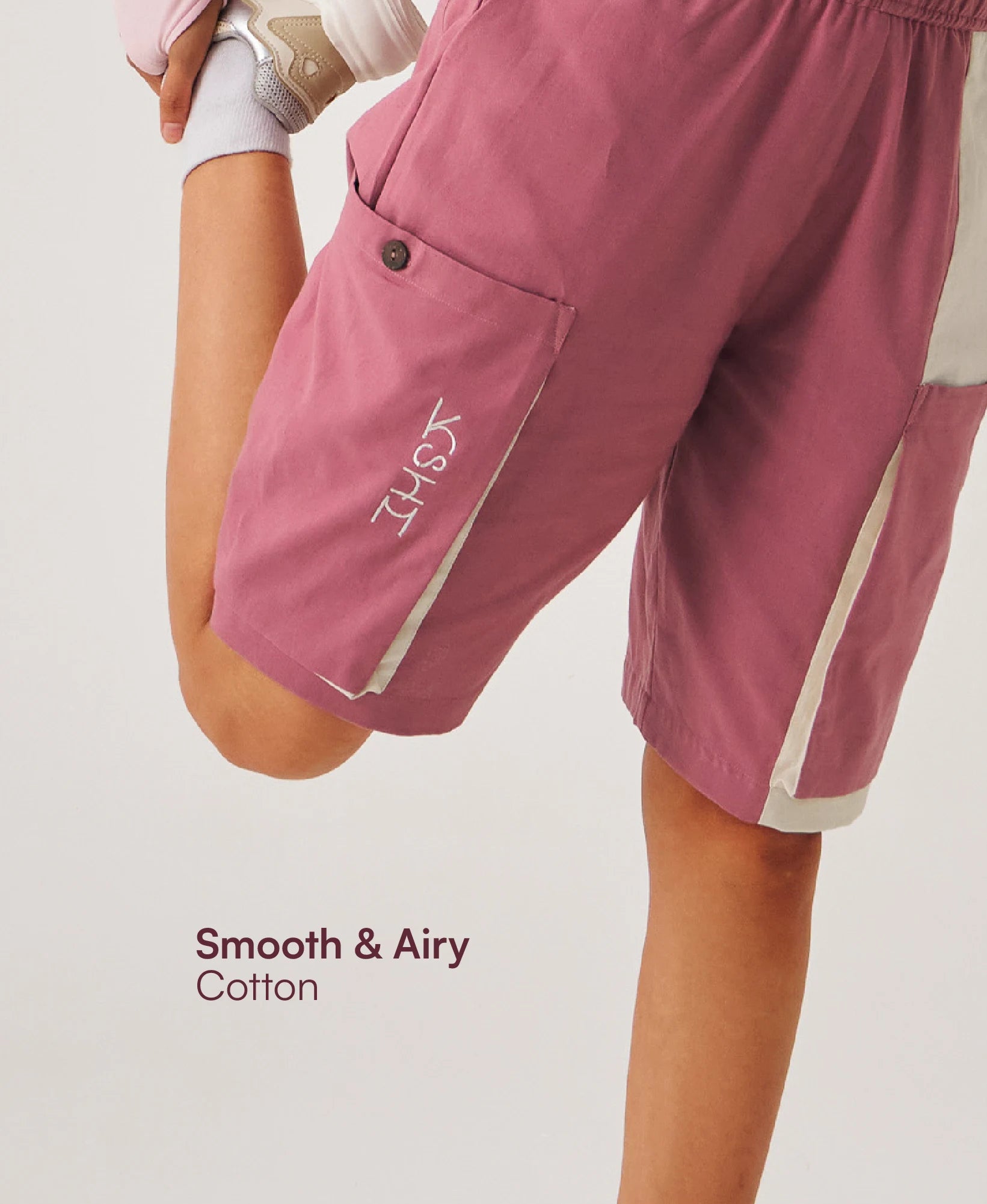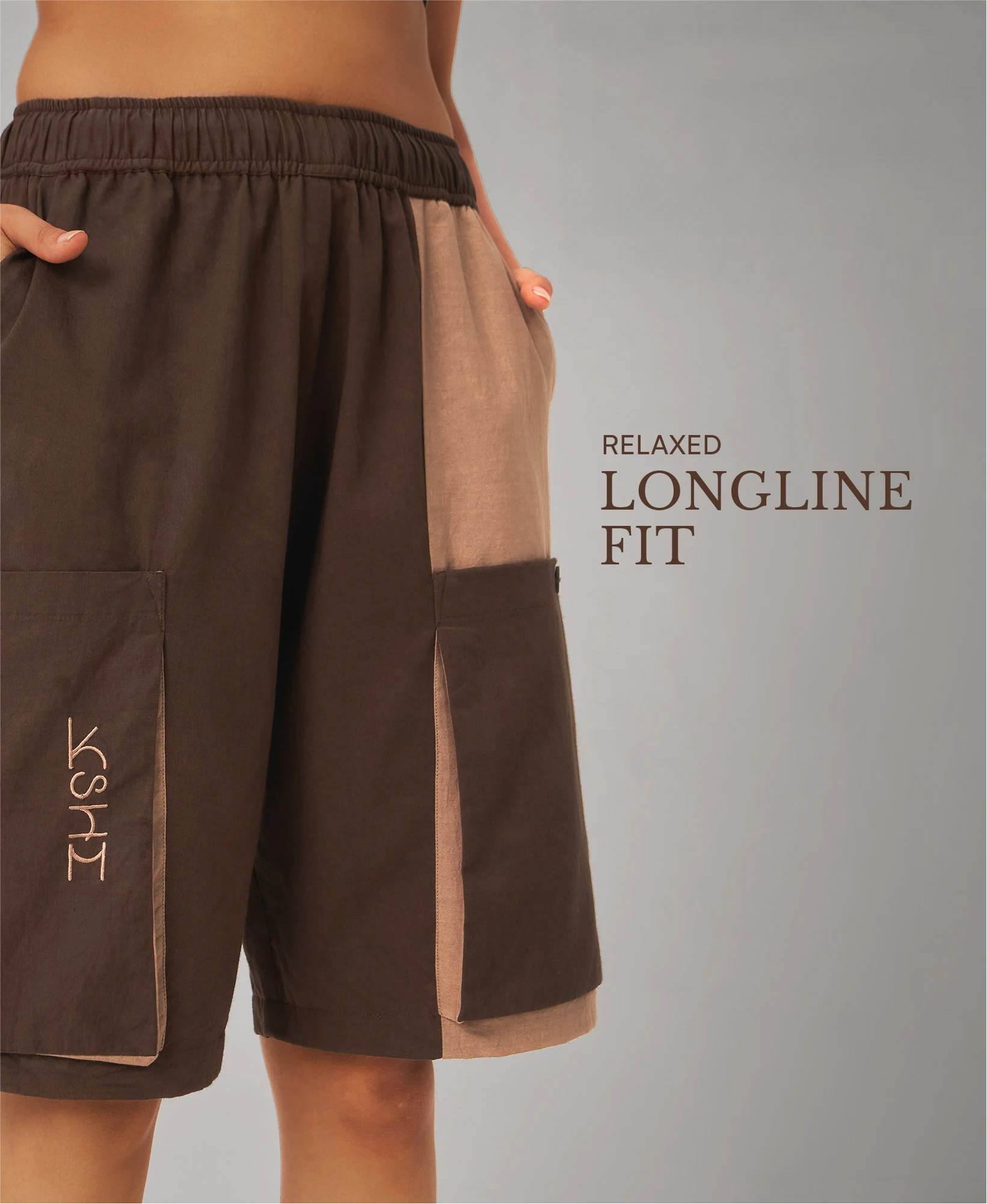 Big Brahmi Shorts are the pocket powerhouse. It features 2 side pockets and 2 smart and deep pockets on the thighs and one pocket on the back- perfect for storing your phone, wallet, or other summer essentials.