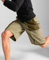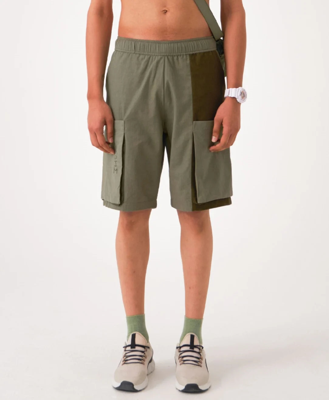 An ‘ancient script’ inspired logo on the front cargo pocket, with wooden button closures and earthy colors gives rooted character.